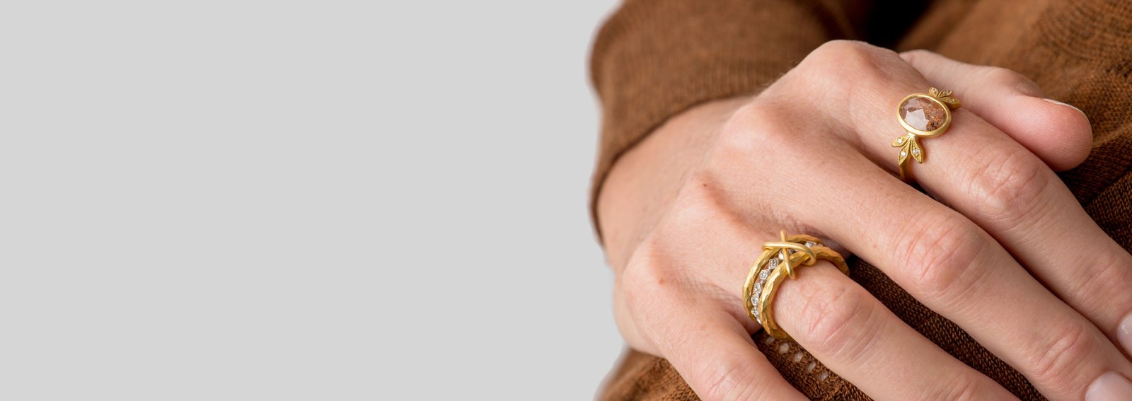 نحن نعمل مع صائغي المجوهرات الخبراء الذين يستخدمون مواد عالية الجودة ودائمة ، من المعادن الثمينة – مثل الذهب المعاد تدويره والمستخرج بمسؤولية – إلى الماس من مصادر أخلاقية والأحجار الكريمة من فئة AAA.